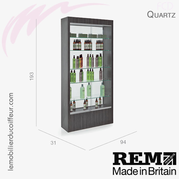 L'unité d'exposition de salon QUARTZ est conçue pour être compatible et compléter presque toutes les gammes REM.Il a un dos en verre ou miroir qui le rend idéal pour une utilisation comme séparateur de pièce, présentant des produits, mais laissant passer la lumière.
