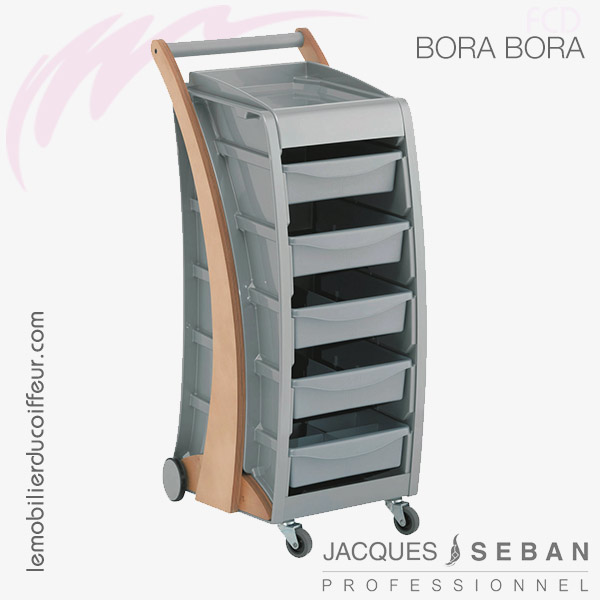 BORA-BORA de Jacques SEBAN | Chariot possédant possède une structure plastique et bois, 5 tiroirs amovibles, coloris poirier/noir ou poirier/argent . ...