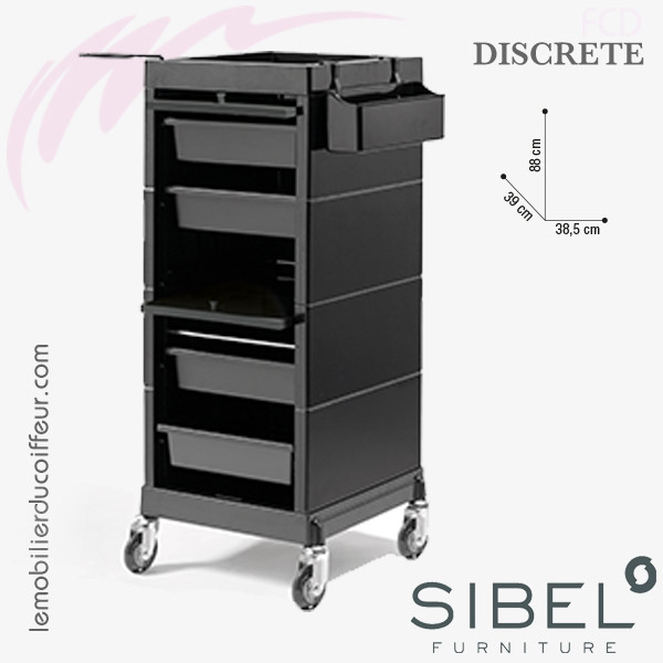 Cette table de service DISCRETE de SIBEL aux quatre côtés pleins,garde à l'abri des regards votre matériel de coiffure.
