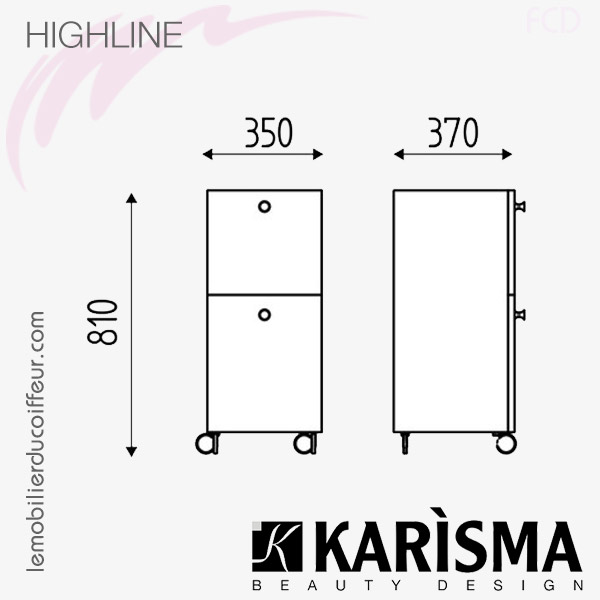 Chariot de service HIGHLINE de Karisma,Table de service avec 2 tiroirs en melaminé disponible en plusieurs finitions de bois