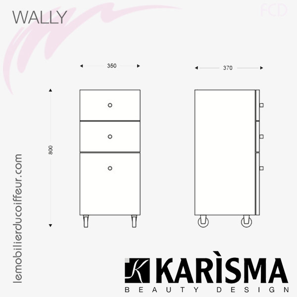 Chariot de service WALLY de Karisma,en acier inoxydable à roulettes, finition brillante.