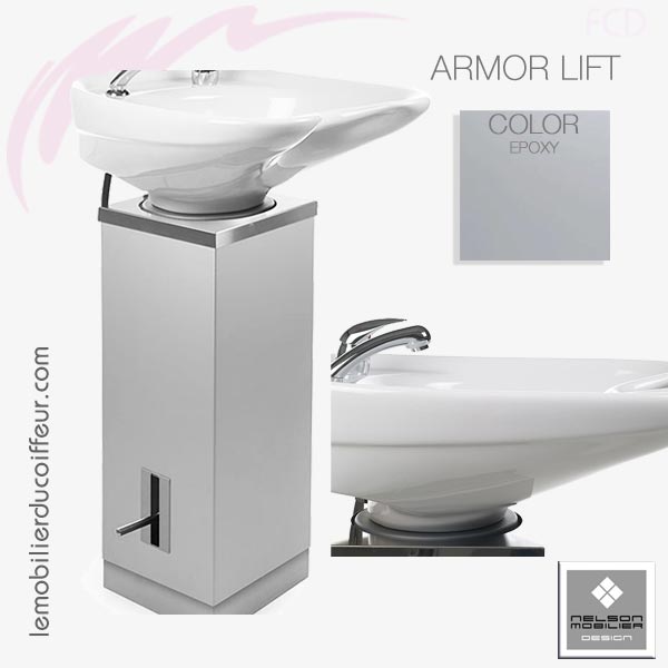 Armor : Colonne de lavage en aluminium. Cuvette profonde ergonomique réglable.
