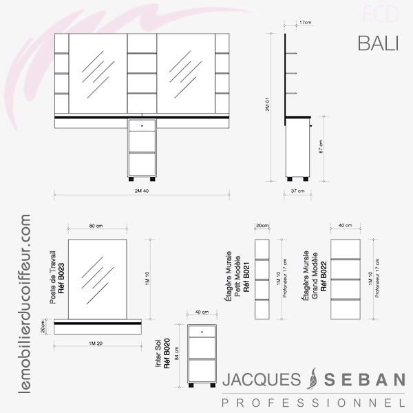 BALI de Jacques SEBAN | poste de travail pour salon de coiffure 1,2 ou 3 places. ...