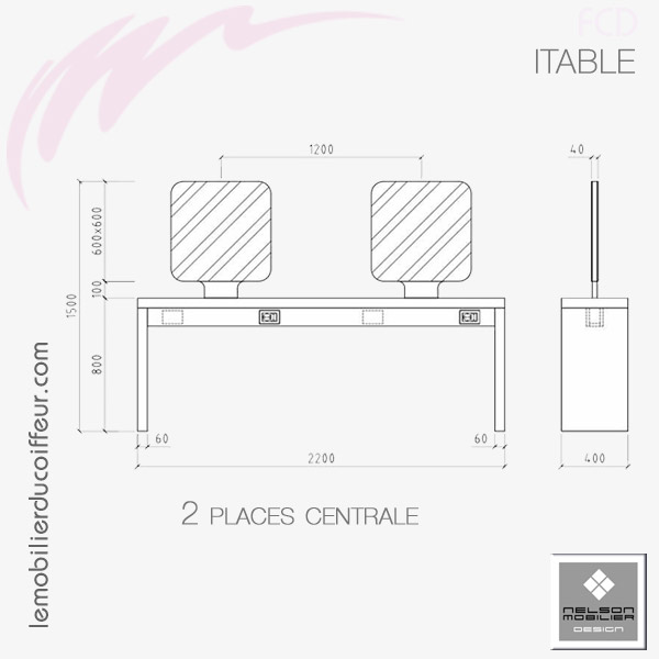 Coiffeuse centrale 2 places.