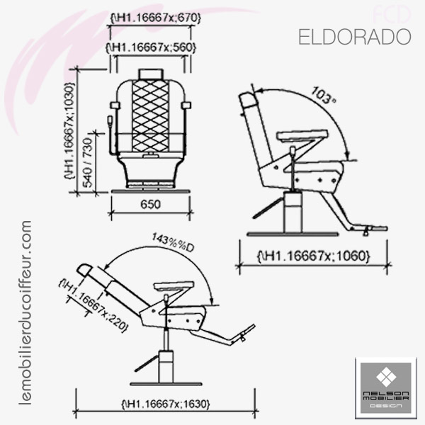 Eldorado : Fauteuil barbier avec pompe hydraulique blocable.