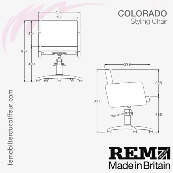 La chaise de coiffure Colorado est dotée d'une base hydraulique 5 étoiles en standard.