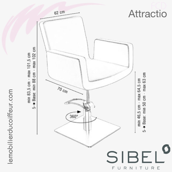Le fauteuil Attractio est l'incarnation même de l'élégance et du dynamisme.En choisissant ce fauteuil de coiffure, vous jouez la carte de la qualité, du confort d'assise et de l'intemporalité.